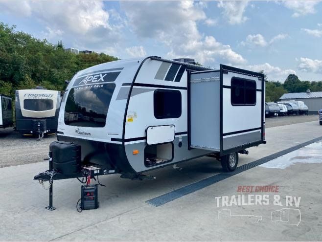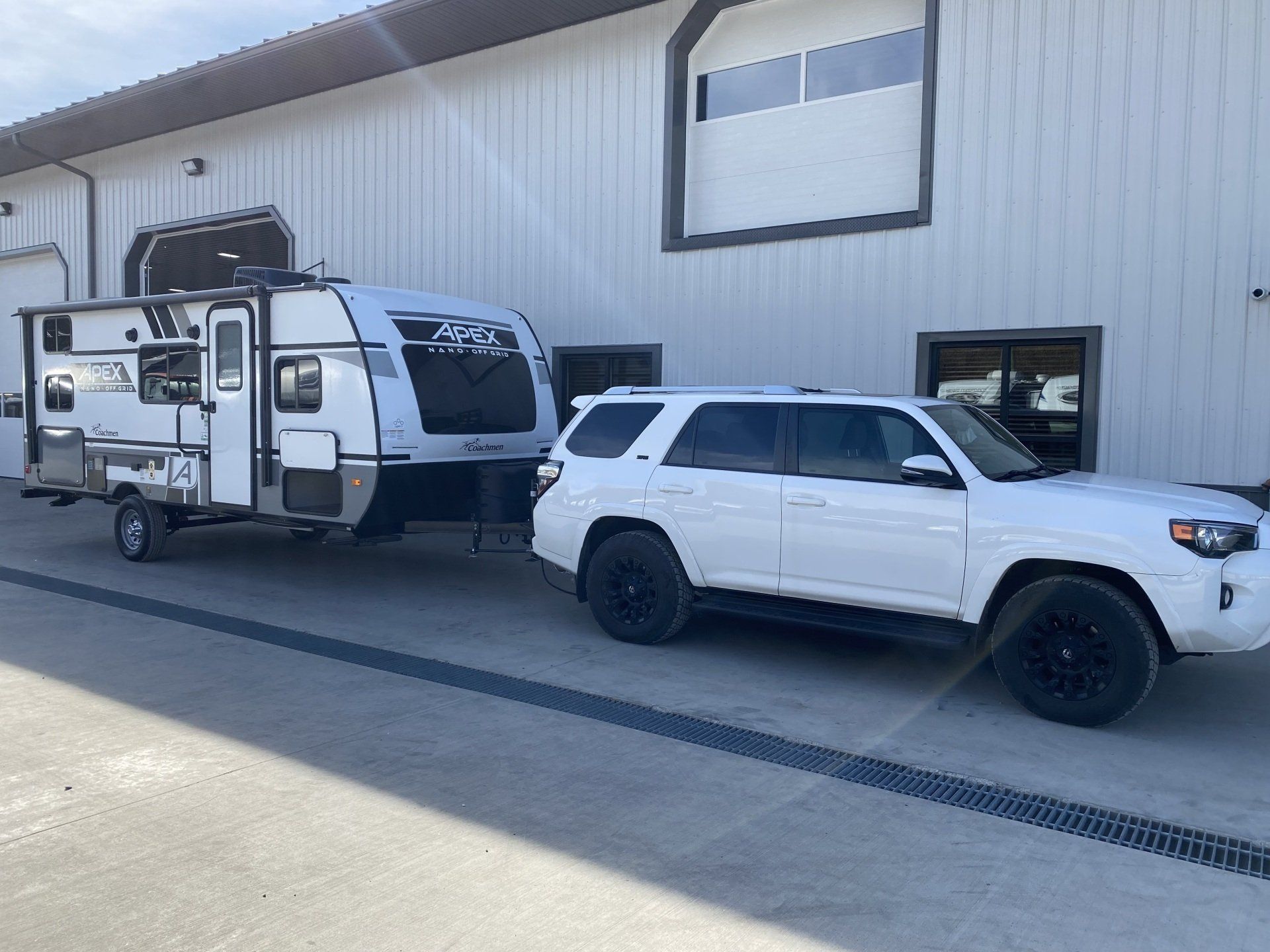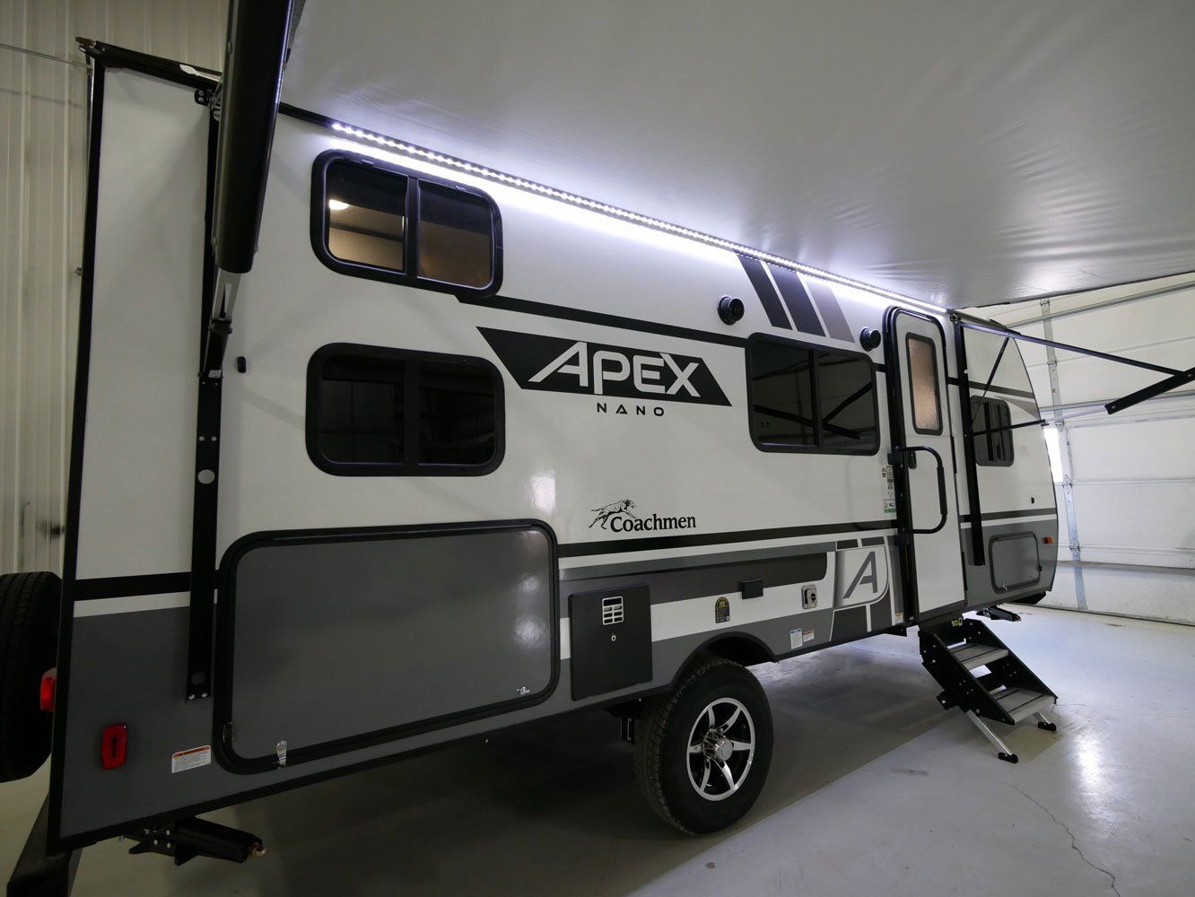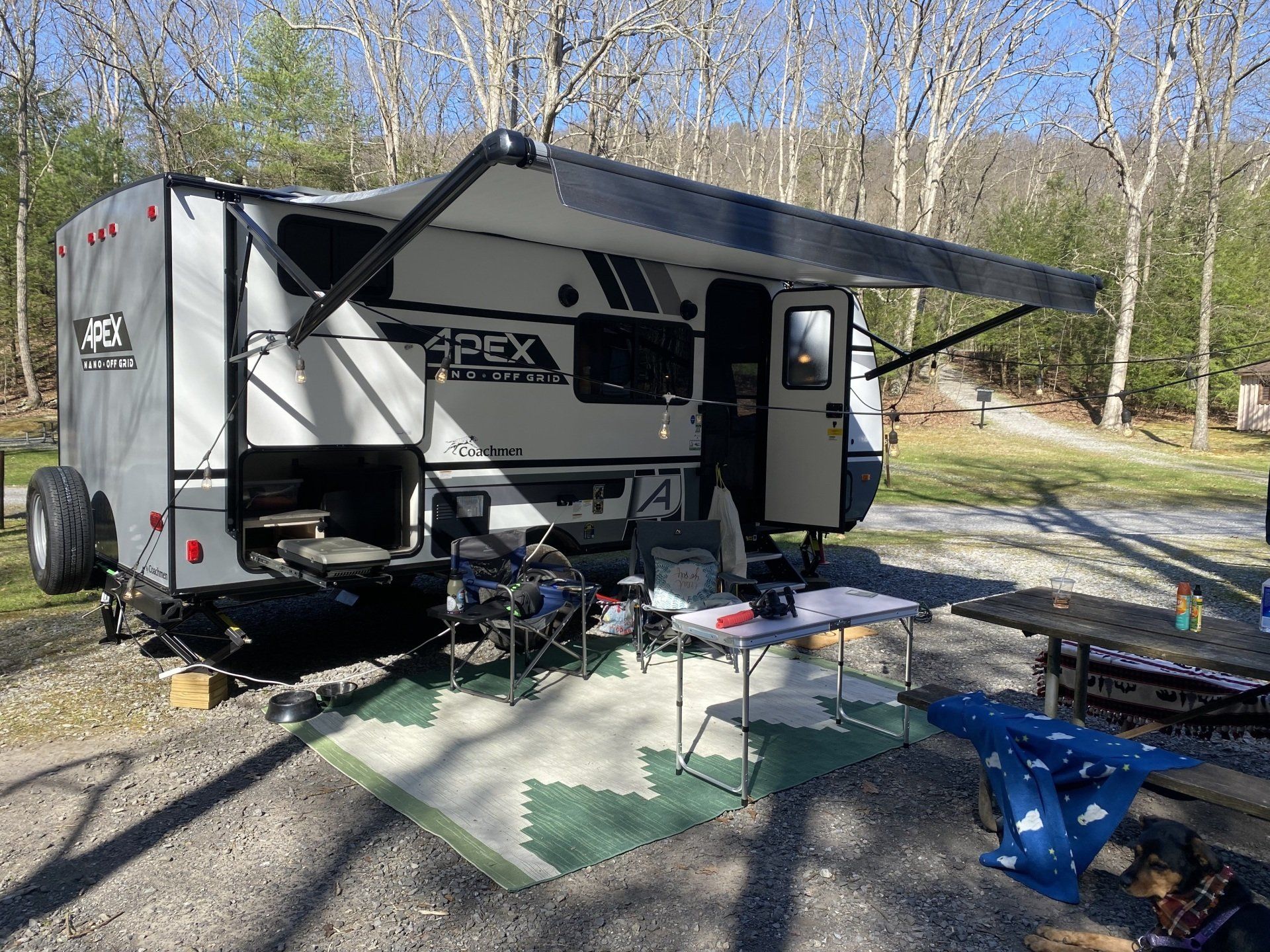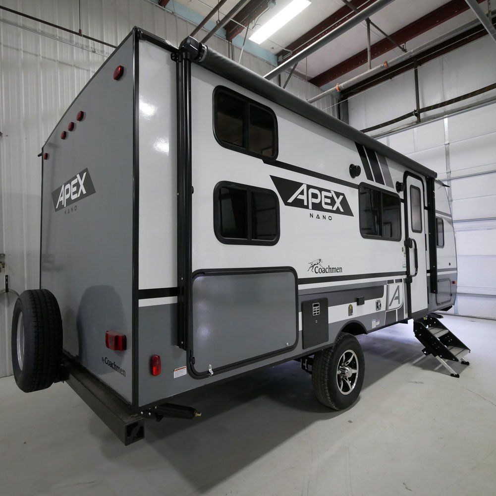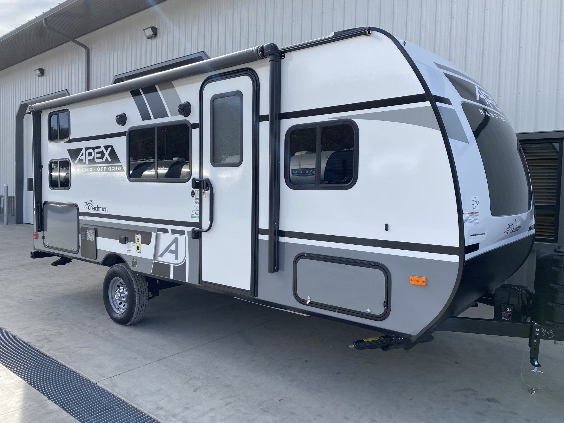 We are excited to offer our brand new 2022 travel trailer for rent! This trailer has some incredible features and is perfect for a family camping getaway with all the comforts of home. Whether you’re staying at a campground that offers electric and water hookup, or planning on off grid boondocking using the generator, solar panel, and water storage tank, we’ve got you covered. This Coachmen Apex Nano 194BHS Off Grid travel trailer is easy to tow and maneuver at only 22’ total length. With a dry weight of only 3,634lbs it can easily be pulled by most midsize SUV’s and half ton pickup trucks. With a full queen bed, 2 bunk beds, full kitchen, huge slide out with dinette that turns into another bed, full bath with tub/shower combo, 14’ awning, indoor and outdoor speakers with Bluetooth stereo, outdoor kitchen, outdoor shower, and so much more, this camper is second to none.