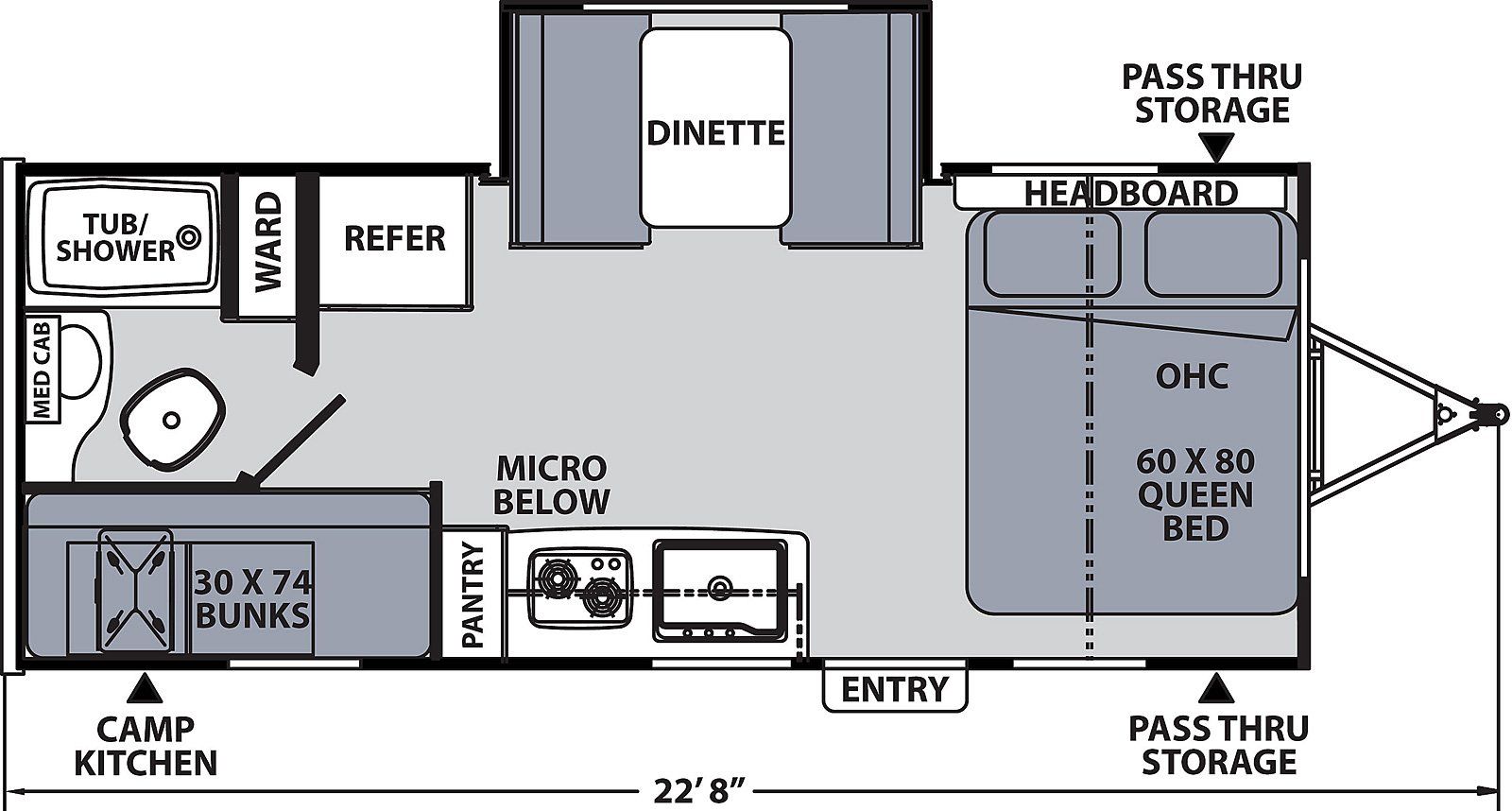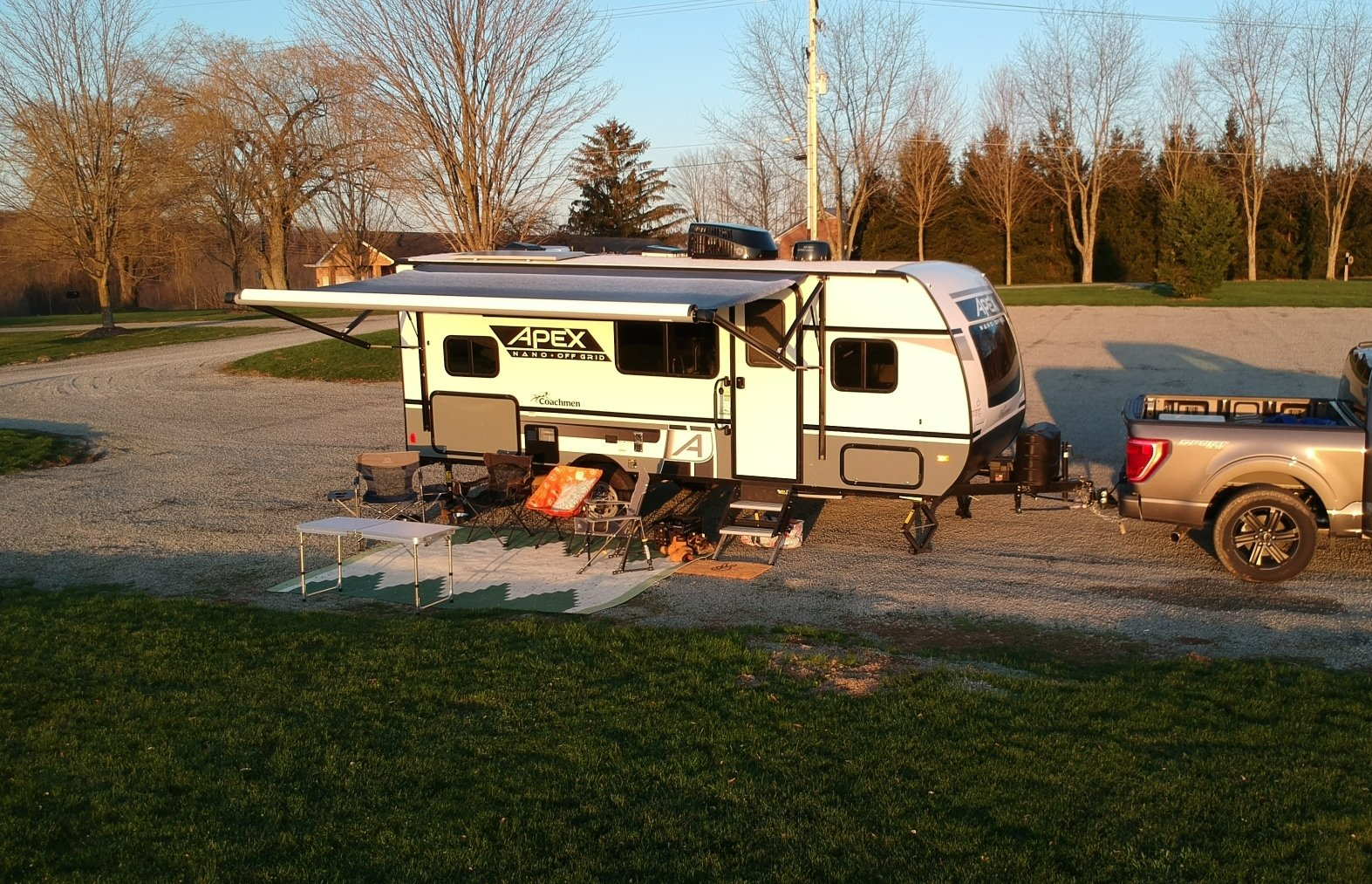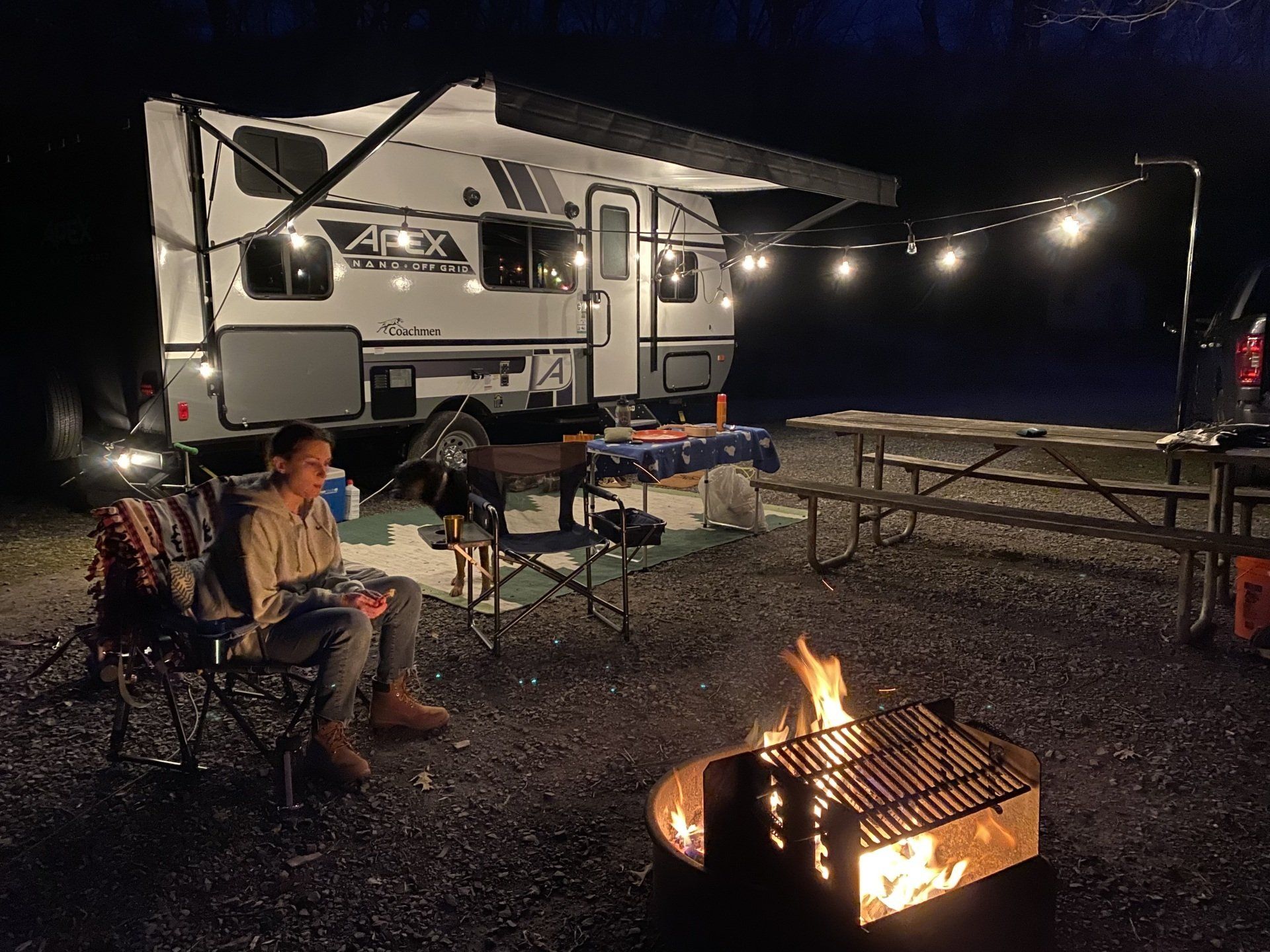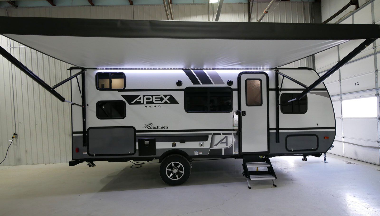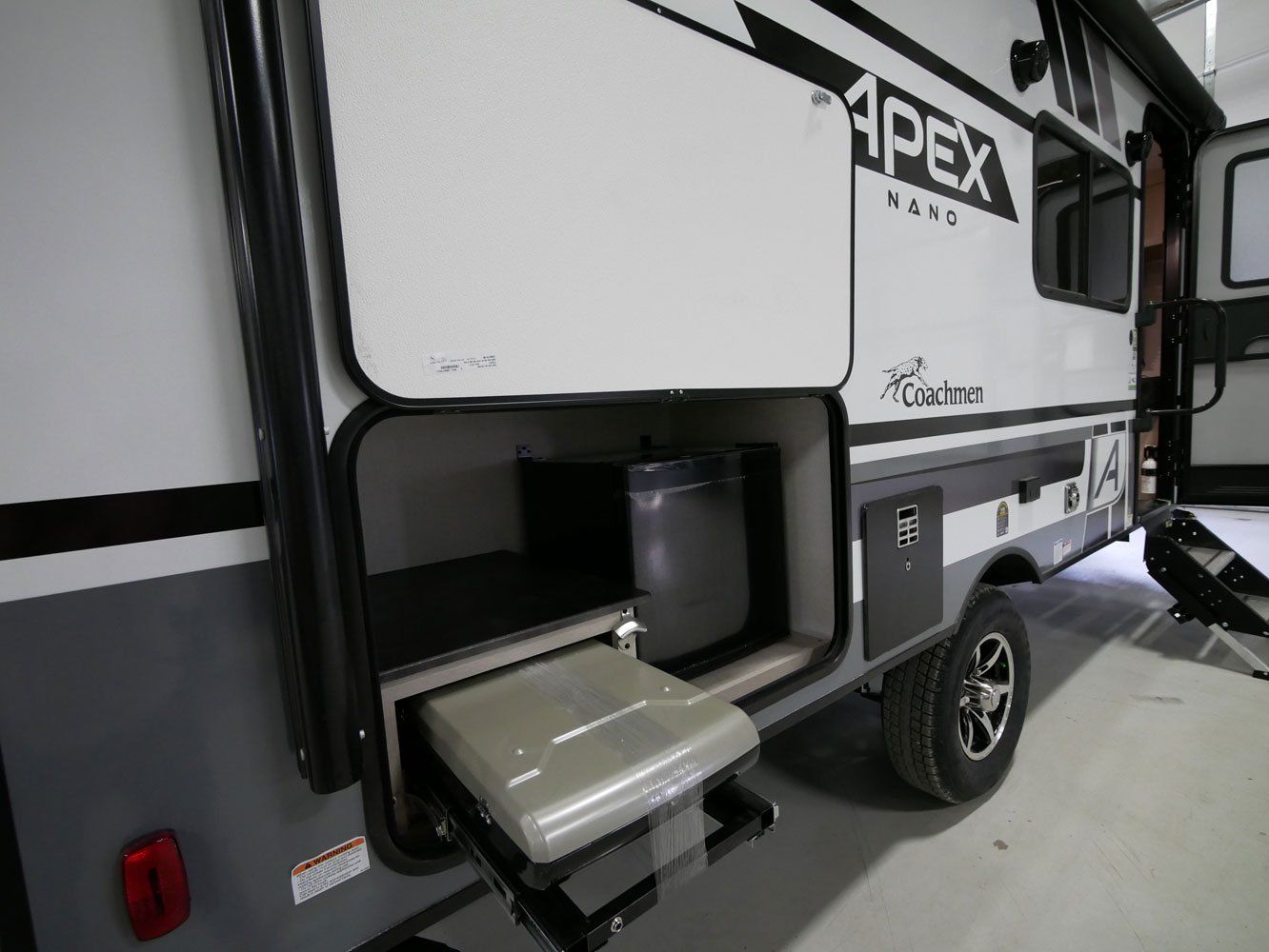 We are excited to offer our brand new 2022 travel trailer for rent! This trailer has some incredible features and is perfect for a family camping getaway with all the comforts of home. Whether you’re staying at a campground that offers electric and water hookup, or planning on off grid boondocking using the generator, solar panel, and water storage tank, we’ve got you covered. This Coachmen Apex Nano 194BHS Off Grid travel trailer is easy to tow and maneuver at only 22’ total length. With a dry weight of only 3,634lbs it can easily be pulled by most midsize SUV’s and half ton pickup trucks. With a full queen bed, 2 bunk beds, full kitchen, huge slide out with dinette that turns into another bed, full bath with tub/shower combo, 14’ awning, indoor and outdoor speakers with Bluetooth stereo, outdoor kitchen, outdoor shower, and so much more, this camper is second to none.
